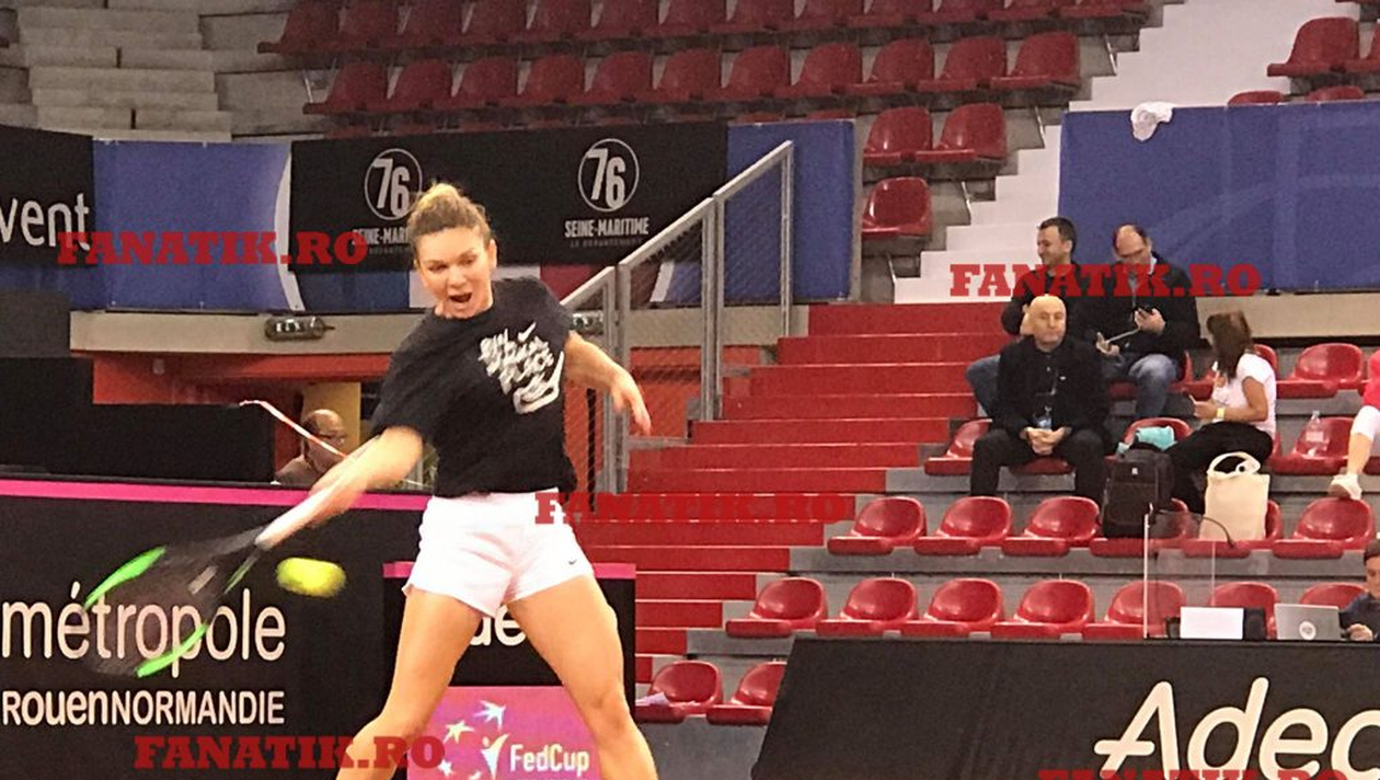 Simona Halep nu ne-a dat emoții la meciul de debut al României contra Franței, din semifinalele Fed Cup! A învins-o lejer pe Kristina Mladenovic, numărul 66 mondial, cu 6-3, 6-1.