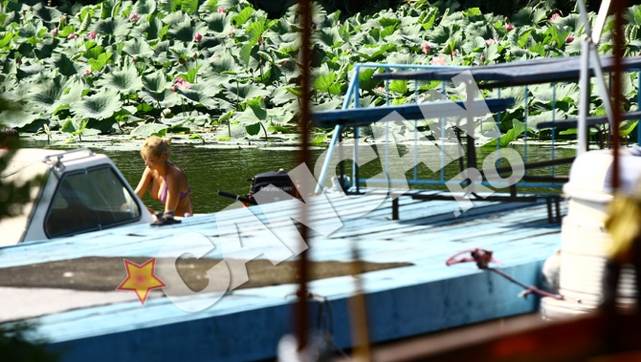 Desi sunt piscine cochete sI la Snagov, Simona Sensual a optat pentru un alt fel de distractie, incumetandu-se sa se plimbe cu barca. Imbracata intr-un costum de baie lila, cu un sutien minuscul, care-i acoperea o mica parte din silicoanele ei imense, blonda a afacut furori pe lac, barbatii prezenti aclamand-o si fluierand-o minute in sir. Numai ca vaslitul s-a dovedit a fi o indeletnicire destul de dificila sI complicata pentru Simona, astfel incat starleta s-a lecuit in scurt timp. Dupa ce si-a facut damblaua, Simona s-a imbracat cu rochia sI cel mai probabil s-a indreptat ori catre casa, ori catre o piscina.