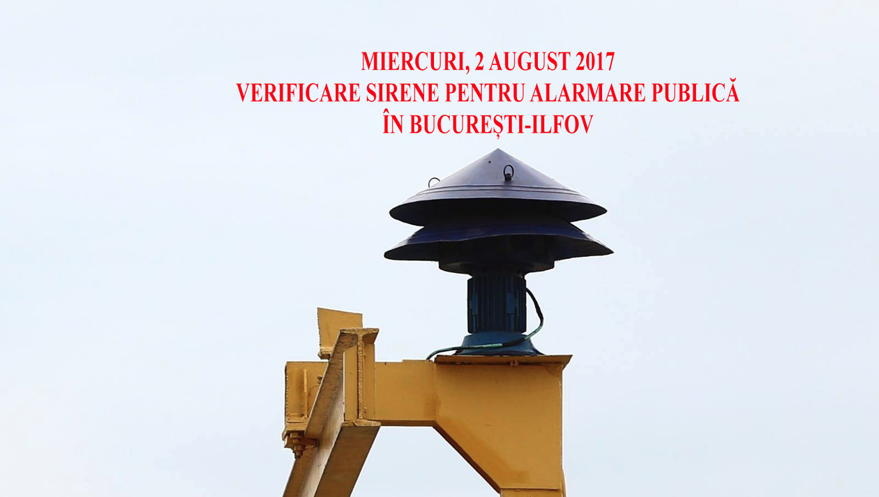 Miercuri, 2 august, în intervalul orar 10:00 – 11:00, în Bucureşti şi judeţul Ilfov, vor fi acţionate sirenele pentru alarmare publică. Prin această verificare se doreşte îmbunătăţirea sistemului de înştiinţare, avertizare şi alarmare în situaţii de protecţie civilă.