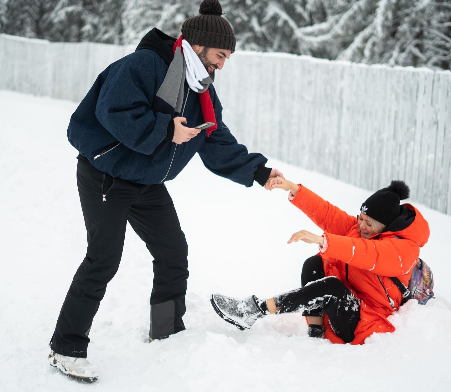 Ori de câte ori au ocazia, cei doi obişnuiesc să îşi transmită mesaje pe reţelele de socializare, spre deliciul şi amuzamentul celor care îi urmăresc. De această dată, Smiley a publicat o imagine mai veche cu iubita lui, în timp ce se bucurau de zăpadă şi le-a povestit internauţilor faptul că în urmă cu doi ani aştepta cu nerăbdare acest moment.
