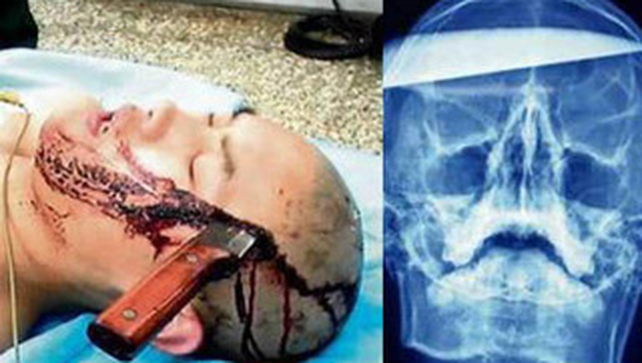 Un baiat de 16 ani din China a ajuns la spital cu un cutit infipt in cap. Xiao Wei a fost injunghiat de un grup de tineri in fata unui internet cafe.