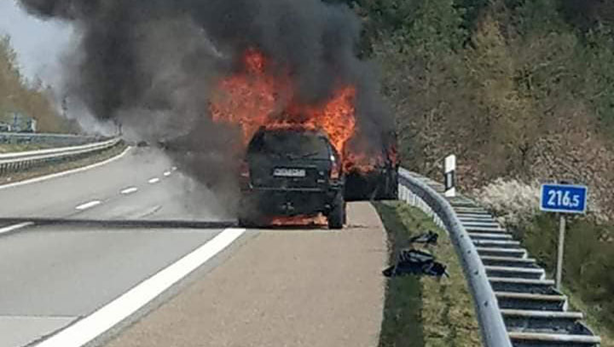 Doamna respectivă se îndrepta astăzi (n.r.: ieri) spre Kandel, pe A62 , direcția Pirmansens și în jurul orei 14:30 , suv-ul marca Mercedes a luat foc în preajma unui tunel situat pe autostradă. Avea atașată suv-ului o remorcă cu doi cai, iar în momentul izbucniri incendiului cele 2 nemțoaice din mașină au fugit abandonând-o. În acel moment, dintr-un camion românesc a coborât șoferul acestuia, coleg al nostru, care riscandu-și viață în eventualitatea unei explozii, a decuplat remorca cu cai și a reușit să o îndepărteze suficient pentru a salva animalele.