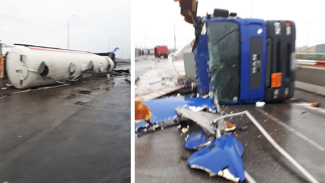 Șoferul unei cisterne pline cu motorină s-a răsturnat în Prahova și a distrus 2 TIR-uri parcate