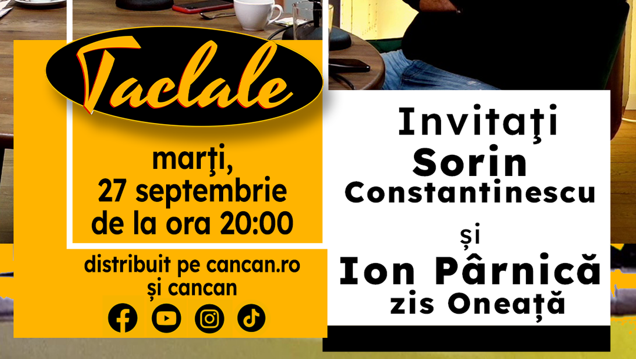 Sorin Constantinescu, ‘’șeful cazinourilor’’ din România, revine la podcastul ”TACLALE’’ alături de Ion Pârnică zis Oneață, cunoscut și ca ‘’regele barbutului’’. Interviul cu cei doi va putea fi urmărit marți, 27 septembrie, de la ora 20.00, pe site-ul cancan.ro, pe pagina de Facebook CANCAN și pe canalul de YouTube CANCAN.