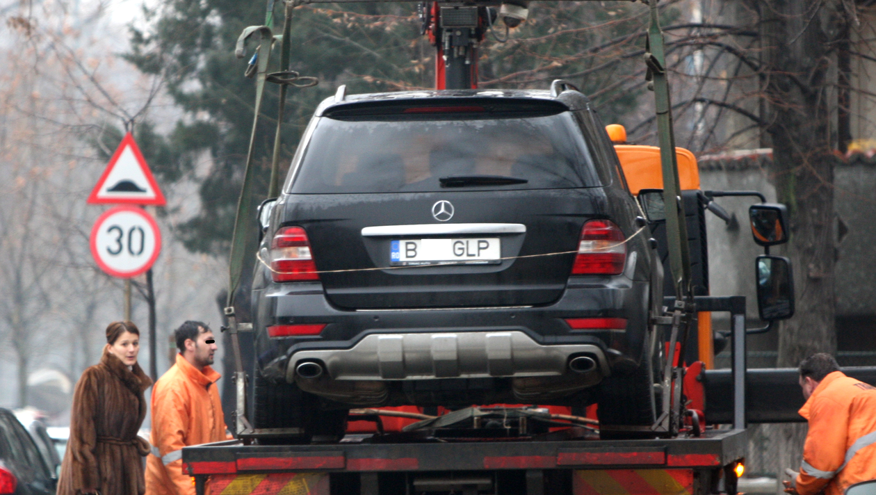 Sotia fostului international a intrat in restaurant, insa, la scurt timp, masina i-a fost ridicata pe platforma.