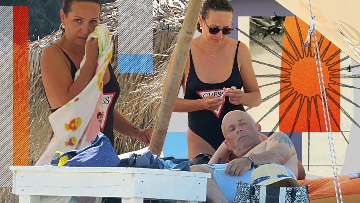 Dacă partenera de viaţă a actorului a profitat din plin de vremea frumoasă şi de temperatura perfectă a apei, nu am putea spune acelaşi lucru despre Mugur Mihăescu. Patronul de restaurante a preferat să îşi petreacă tot timpul pe un şezlong, admirând din când în când frumuseţea pe care o are alături de o viaţă.