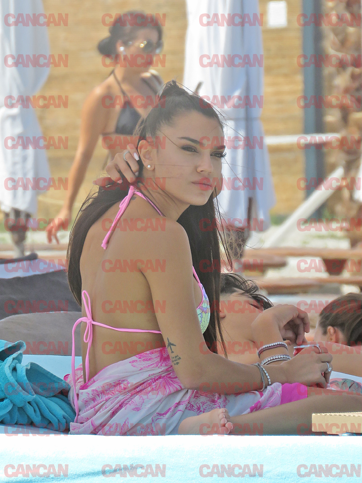 Prezentă pe o plajă din Mamaia, tânăra cântăreaţă a fost evident recunoscută de oameni şi admirată pentru formele bine definite pe care a încercat să le ascundă sub o rochie lejeră de plajă. A preferat să se ascundă de razele soarelui sub o umbrelă şi să nu părăsească perimetrul. Adică şezlongul. S-a anturat cu mama ei şi o altă prietenă la discuţii şi a savurat o doză rece de suc negru. Deşi are foarte mare grijă la felul în care arată, pentru câteva ore, nu a mai ţinut cont de „dietă”.