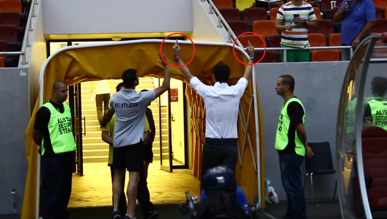 Managerul Stelei a lovit cu piciorul steagul lui Dinamo inaintea meciului de duminica seara si le-a aratat semne obscene suporterilor echipei din Stefan cel Mare.