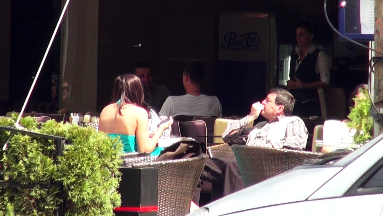 Inca o nazdravanie a excentricului milionar Dan Nicorescu. De aceasta data a iesit la o terasa cu doua fete si a inceput sa-si roada unghiile (de emotii?) in fata lor. Probabil nu era sigur cum se va termina “ieseala” cu "amazoanele".