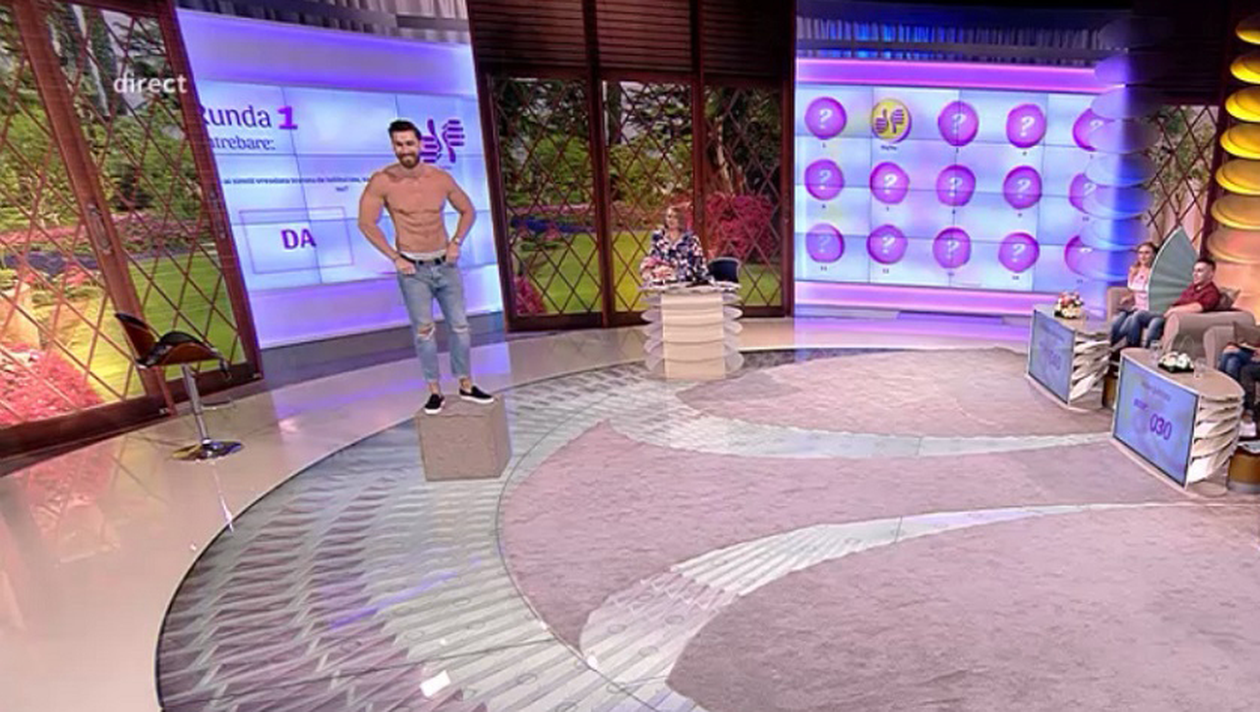 Robert Popescu, asistentul ei, a început apoi show-ul. S-a dezbrăcat la bustul gol, arătându-şi pătrăţelele, şi a dansat, mişcările sale fiind primite cu urale în platou.