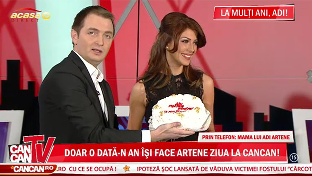 Cu cateva secunde trecute de miezul noptii, prezentatorul emisiunii CANCAN TV si-a primit portia de surpriza din partea colegilor de emisiune. Acestia i-au cantat "La multi ani!" cu ocazia adaugarii inca unui an de viata.
