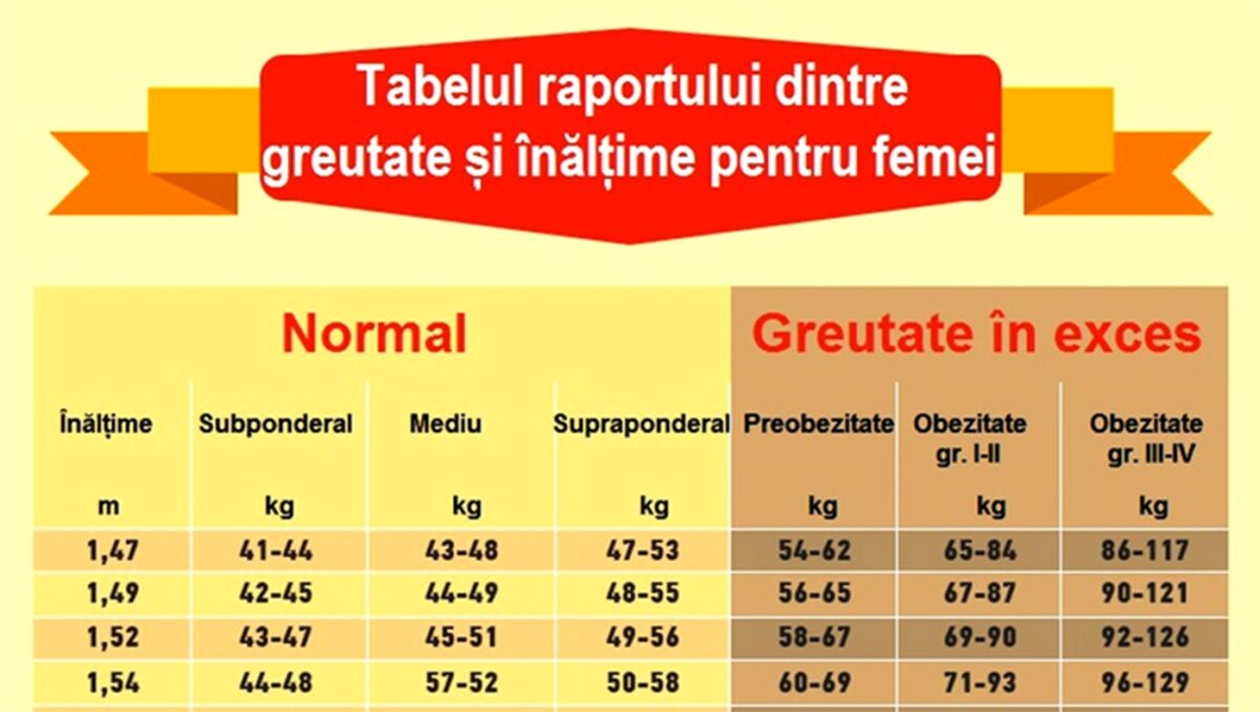 Aceste valori sunt orientative, deoarece fiecare persoană are o conformație diferită. Este important să îți asculți corpul și să urmărești mai degrabă sănătatea, nu doar numărul de pe cântar.