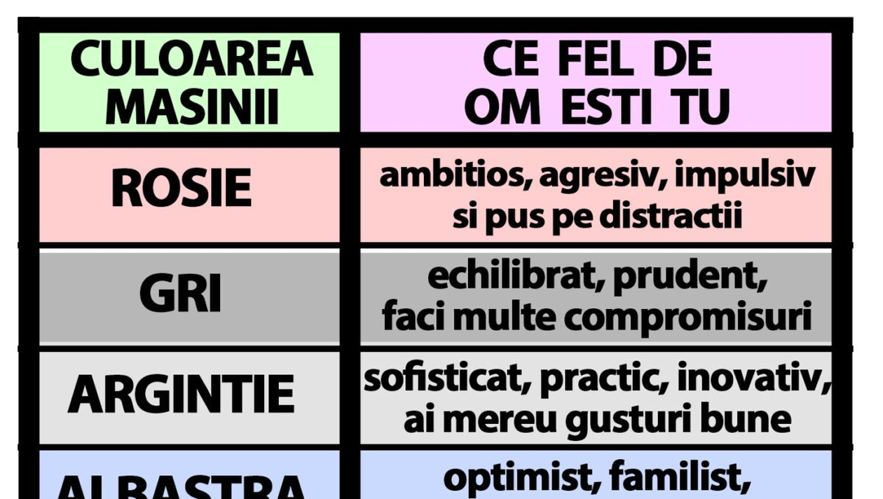 Te-ai întrebat vreodată ce spune culoarea mașinii tale despre tine? În cazul în care ai ales-o special, psihologii au găsit o semnificație pentru decizia ta.