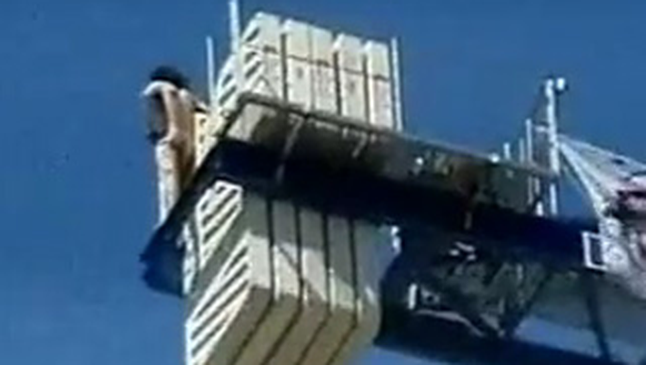 VIDEO SOC! Un barbat gol-pusca a protestat in varful unei macarale, in mijlocul Bucurestiului!
