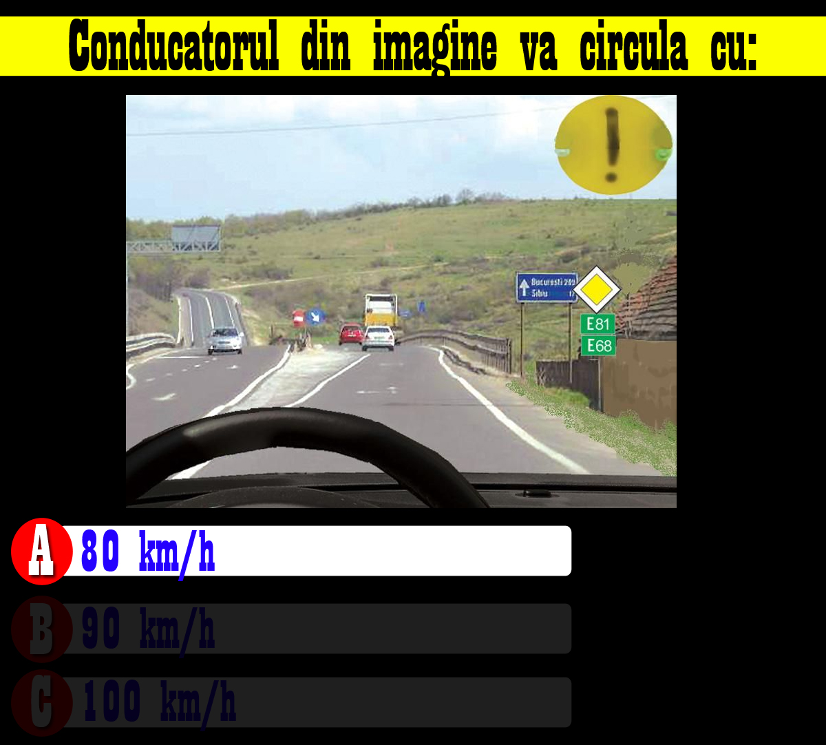 Cu ce viteză va circula șoferul din imagine: 80 km/h, 90 km/h sau 100 km/h?
