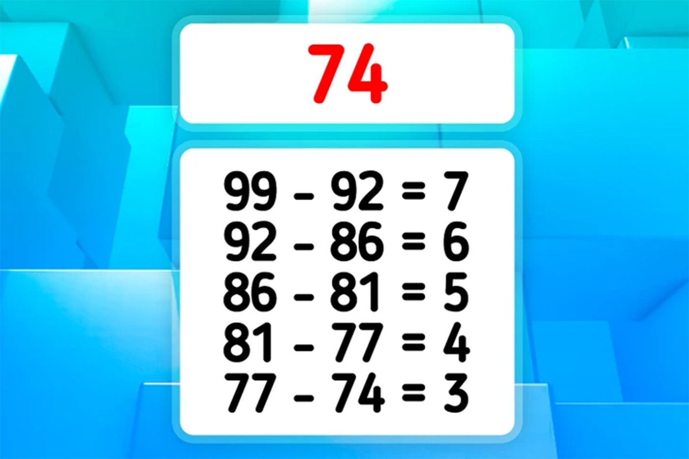 Testul de astăzi pare la prima vedere unul simplu, o problemă de matematică de clasele primare, însă, nu e chiar așa. În esență, tot ce trebuie să faci este să îți dai seama care este numărul corect care completează seria 99, 92, 86, 81, 77.