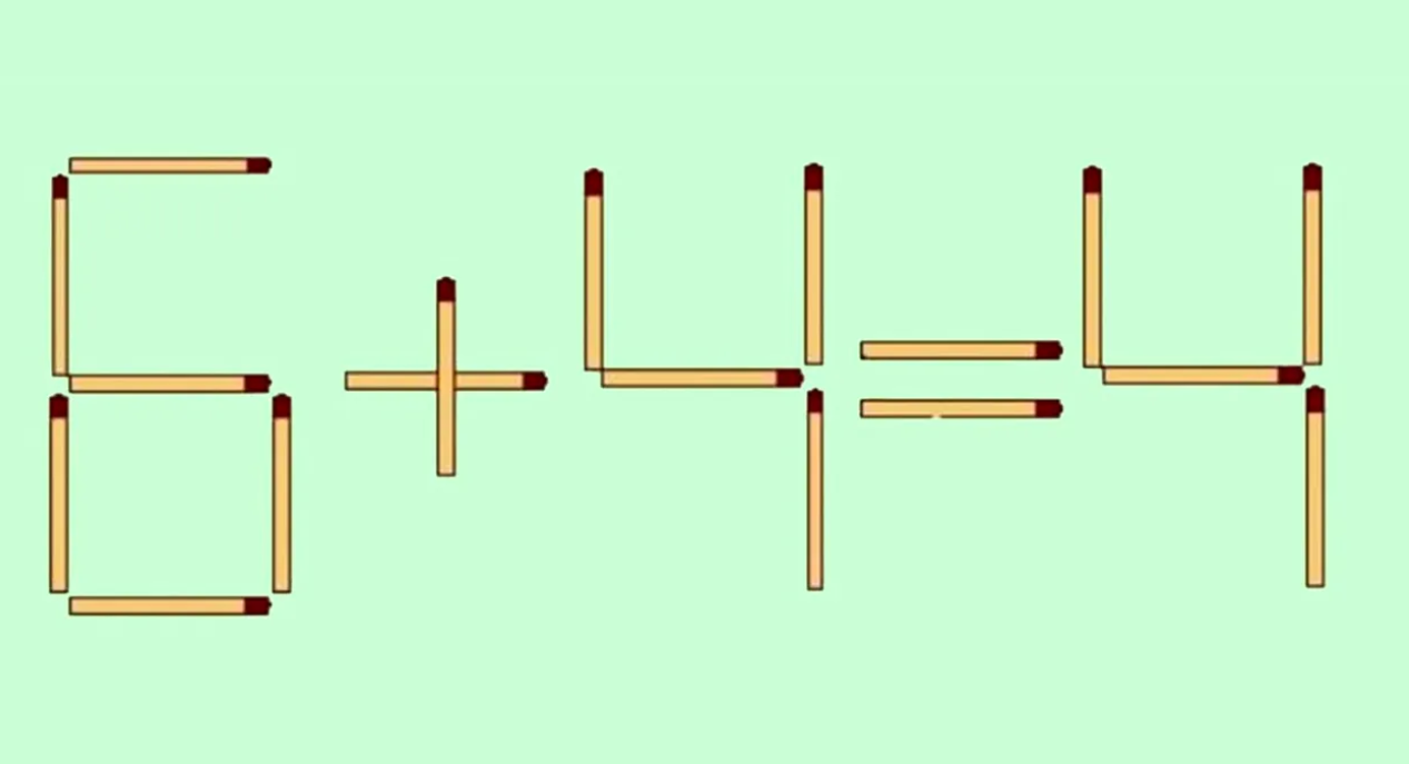Ultima variantă constă în transformarea cifrei „6” în cifra „8”. Cum vom face acest lucru? Ei bine, trebuie să mutăm bățul de chibrit așezat orizontal, la mijloc, în poziție verticală, în spațiul gol. Astfel, vom avea ecuația: „0+4=4”.