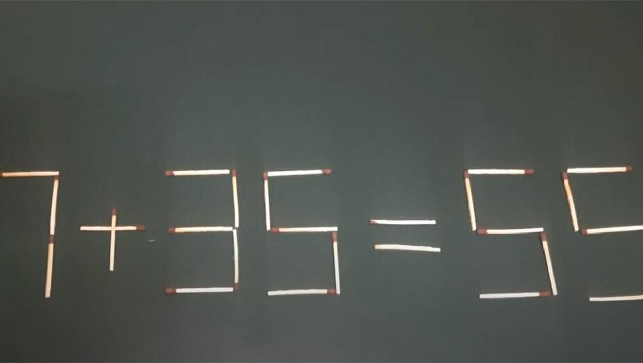 Dacă încă nu ți-ai dat seama ce ai de făcut și încerci de câteva minute să găsești o rezolvare, noi ți-o vom prezenta. Pentru a obține numărul cerut, tot ceea ce trebuie să faci este să îl transformi pe 27 în 21, iar bățul de chibrit îl vei muta la numărul rezultat, și din 55 vei face 56.