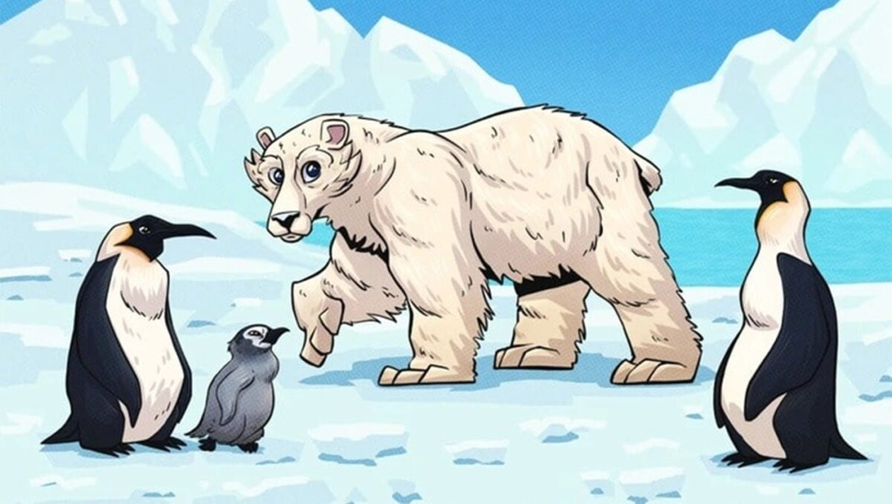 În cazul în care încă nu ați reușit încă să vedeți greșeala o să dezvăluim răspunsul corect. Mai exact, greșeala flagrantă are legătură, după cum spuneam, cu animalele. Deși ursul polar și pinguinii sunt animale polare, aceștia trăiesc la poli diferiți și nu are avea cum să se întâlnească. Urșii polari se găsesc la polul nord, în timp ce pinguinii trăiesc la polul sud.