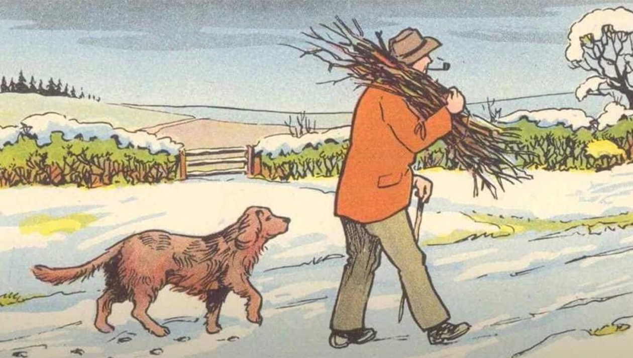 În imagine puteți vedea un domn care cară câteva lemne pe timp de iarnă, însoțit de câinele său. Ei bine, la prima vedere, nu pare nimic suspect în fotografie, însă există o greșeală. V-ați dat seama despre ce este vorba?