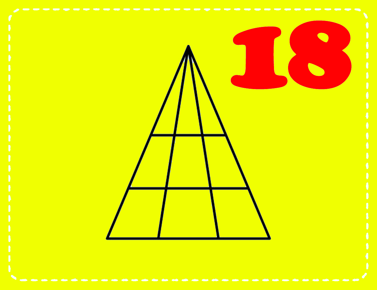 În imaginea de mai sus sunt 18 triunghiuri. Tu ai reușit să le găsești pe toate? Dacă da, înseamnă că ai un nivel IQ foarte mare. Felicitări!