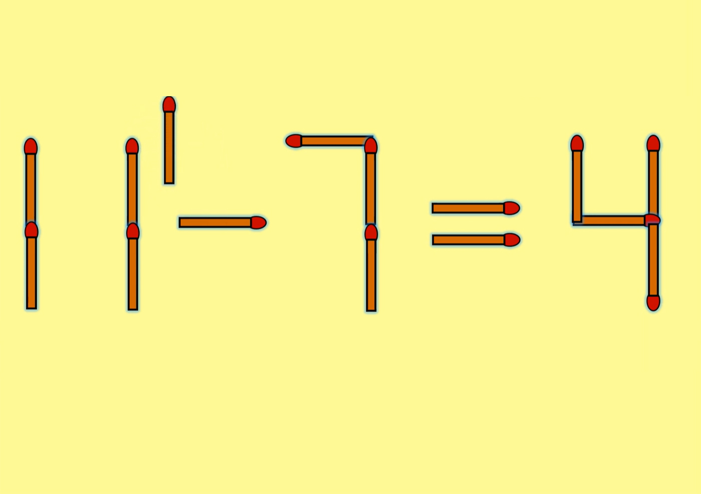Desigur, rezultatul este greșit, iar provocarea constă în a muta un singur băț astfel încât operația să devină corectă.