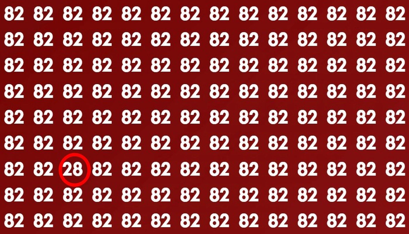 Provocarea de astăzi este una care îți testează cu adevărat „ochiul de vultur”. În această iluzie optică, cititorii trebuie să găsească numărul 28 ascuns printre zeci de cifre 82. Ai la dispoziție doar 5 secunde pentru a identifica diferența subtilă dintre ele.
