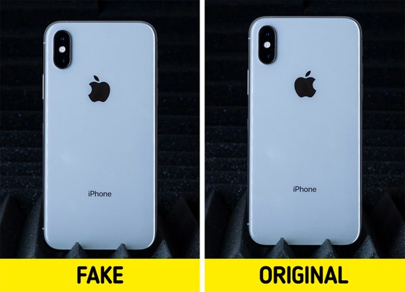 Cei care au reuşit sunt felicitaţi şi aplaudaţi. Iar pentru cei care nu sunt la fel de norocoşi, iată soluţia. Elementul-cheie este logo-ul. Simbolul specific, mărul cu mușcătură, oferă un indiciu clar. La telefonul original, mușcătura este poziționată în partea dreaptă, în timp ce la varianta contrafăcută aceasta apare în partea stângă.
