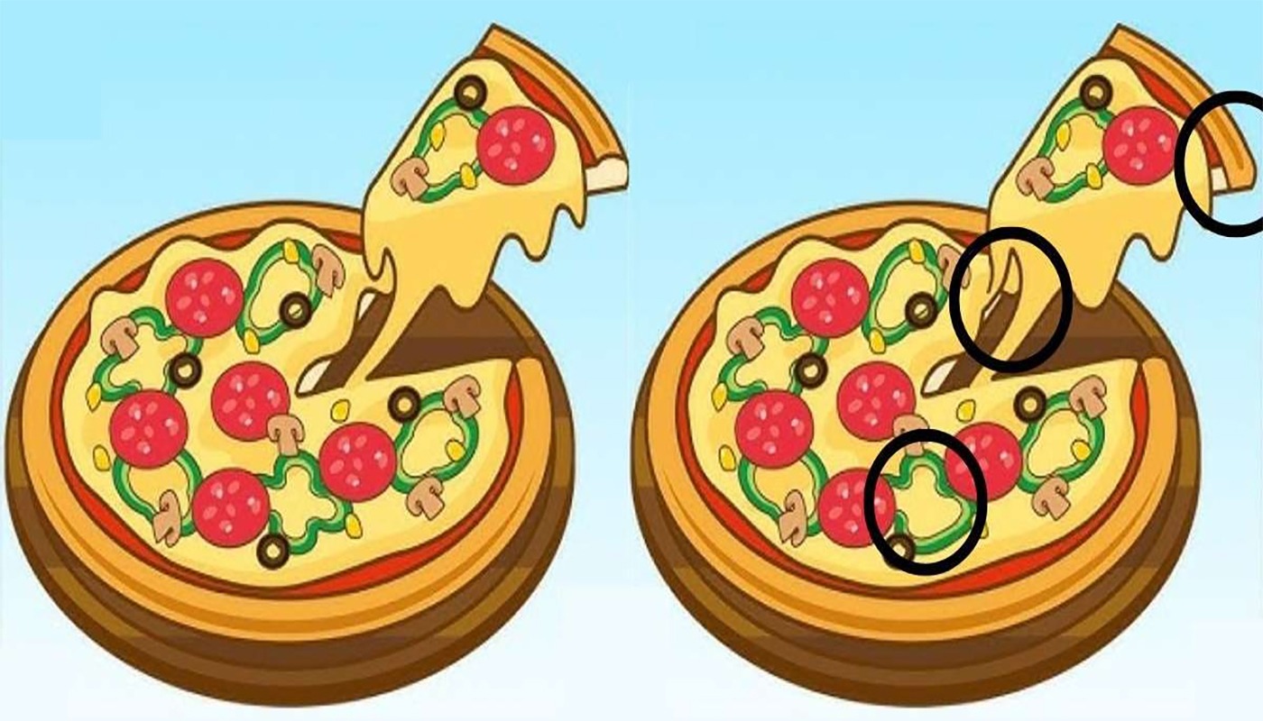 Iată două imagini cu o pizza. La prima vedere, par identice, dar ascund 3 diferențe importante. Poți observa cele 3 diferențe subtile dintre aceste două pizza care par la fel?