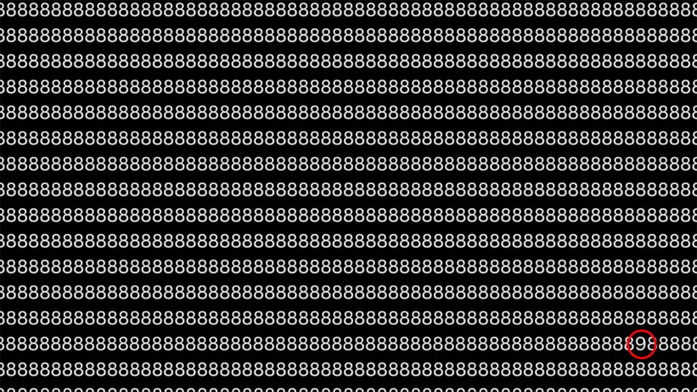 Dragi cititori, CANCAN.RO vă prezintă un test de logică foarte interesant în acest sfârșit de săptămână. Trebuie să priviți cu atenție imaginea de mai sus și să găsiți singura cifră din imagine care nu este 8. Este nevoie de o mare putere se concentrare pentru a identifica „intrusul”. Așadar, nu mai stați pe gânduri, analizați fotografia și spuneți răspunsul corect. Mult succes!