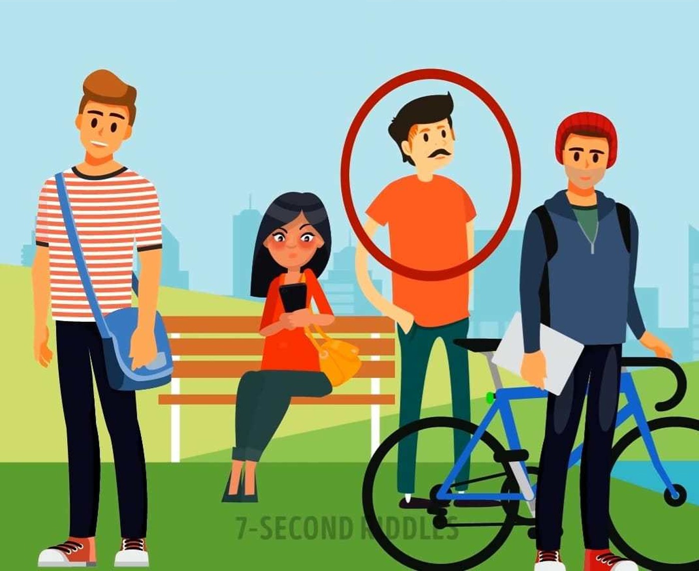 Rezolvare: La o primă vedere, cu toții am fi tentați să spunem că nu există niciun indiciu care să ne arate că una dintre cele patru personaje ar fi evadat din pușcărie. Totuși, dacă privim cu multă atenție imaginea, putem observa un detaliu care ne oferă răspunsul corect. Cum evadatul din penitenciar este chel, trebuie să ne îndreptăm atenția către părul celor patru persoane din imagine. Astfel, se poate observa că al doilea bărbat din dreapta are fruntea roșie din cauza lipiciului pe care l-a folosit pentru a-și fixa peruca pe cap. Deci, cu siguranță el este cel care a evadat din închisoare.