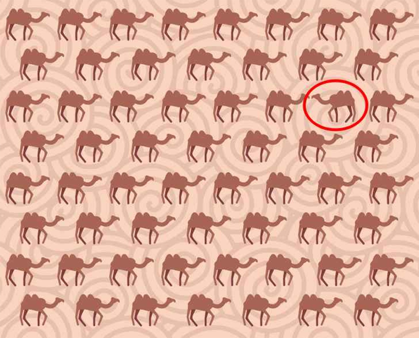 Să vedem dacă poți rezolva acest test de inteligență. Timpul începe acum! Privește imaginea și studiază atent modelul. În imagine sunt mai multe cămile, însă, doar una este diferită de restul. Tu ai găsit-o?