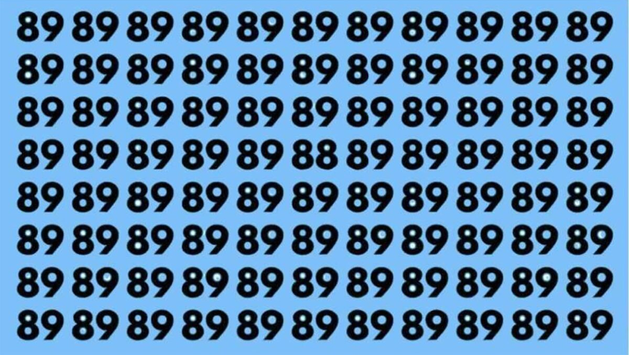 Dragi cititori, CANCAN.RO vă prezintă un test de perspicacitate foarte interesant, menit să vă antreneze mintea și vă dezvolte spiritul de observație. Este vorba despre o iluzie optică ce o să vă pună gânduri. Trebuie să priviți cu atenție imaginea de mai sus și să găsiți numărul 88 ascuns printre numerele 89. Este nevoie de o mare putere se concentrare pentru a identifica „intrusul”. Mai mult decât atât, aveți maximum 5 secunde la dispoziție. Așadar, nu mai stați pe gânduri, analizați fotografia și spuneți răspunsul corect. Mult succes!