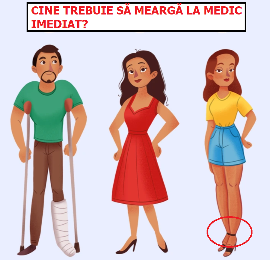 Soluție: Răspunsul corect este fata din dreapta pentru că picioarele i s-au umflat, iar acest lucru indică o afecțiune de sănătate gravă.