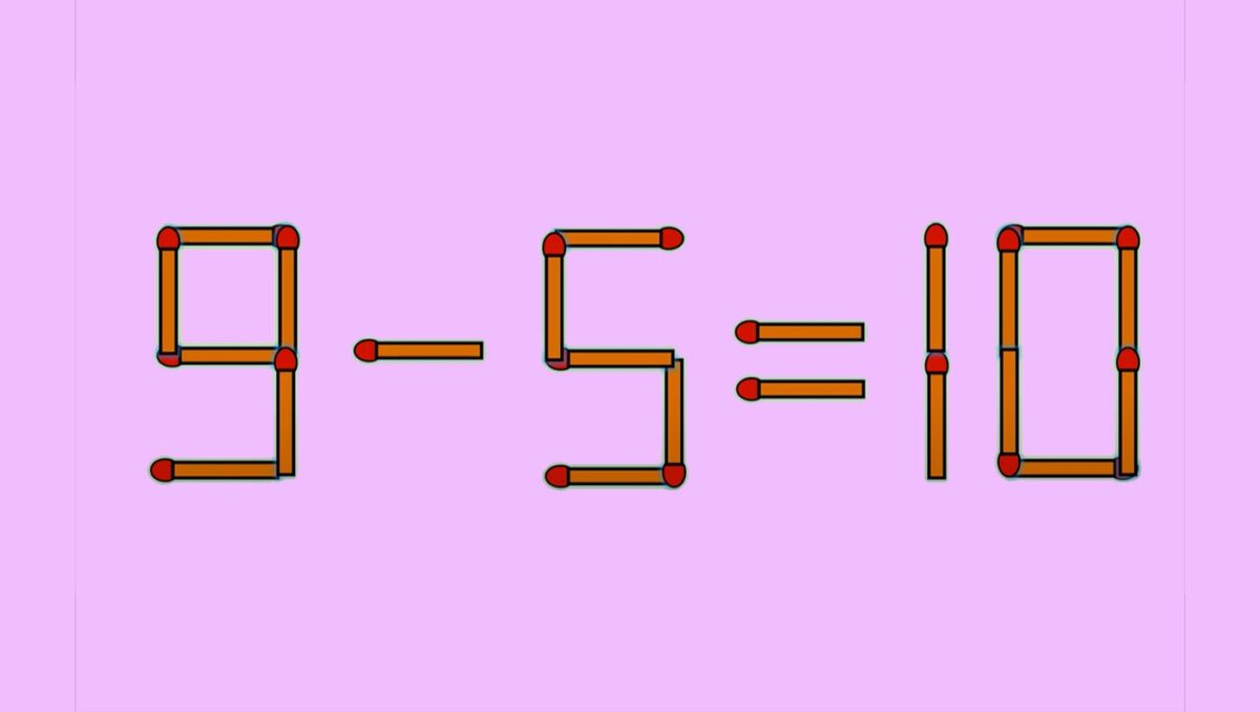 Așa cum spuneam, testul de astăzi pare la prima vedere unul simplu, cu o operație matematică de clasele primare, dar care poate să dea ceva bătăi de cap. În esență, tot ce trebuie să faci este să muți un singur băț de chibrit pentru a corecta egalitatea 9-5=10.