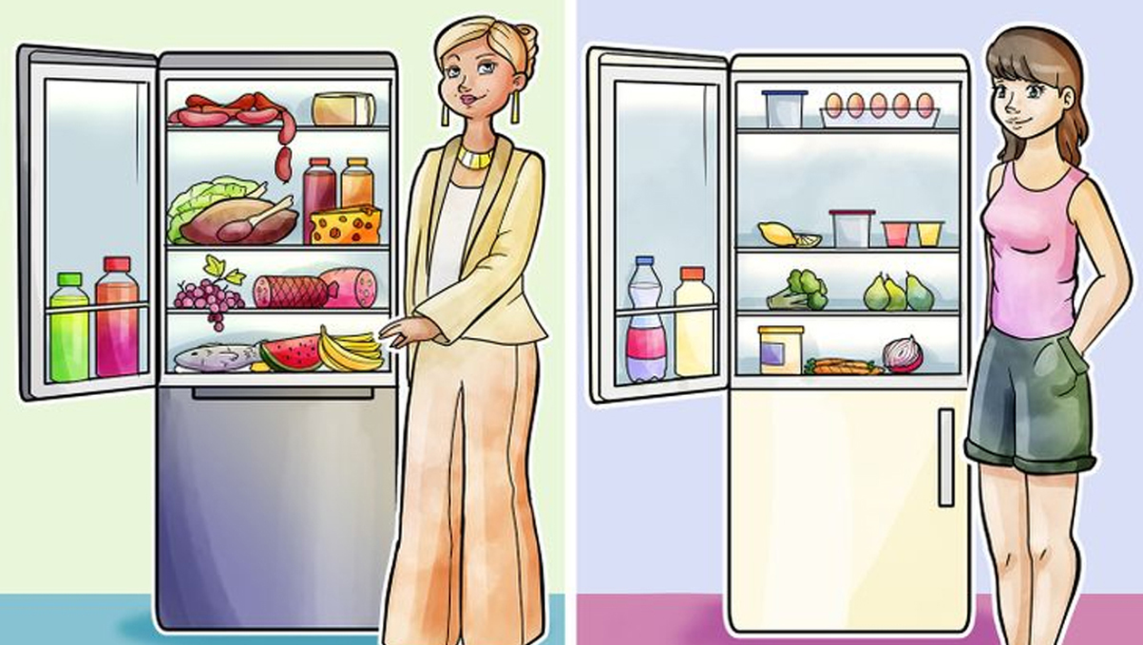 Personajul din stânga este înfățișat de o femeie îmbrăcată extrem de elegant, care își prezintă frigiderul plin cu sucuri, carne și fructe. În dreapta, avem o altă femeie, îmbrăcată în articole vestimentare sport, dar care prezintă alte alimente pe care le are în frigider. Însă, care este, de fapt, răspunsul corect?