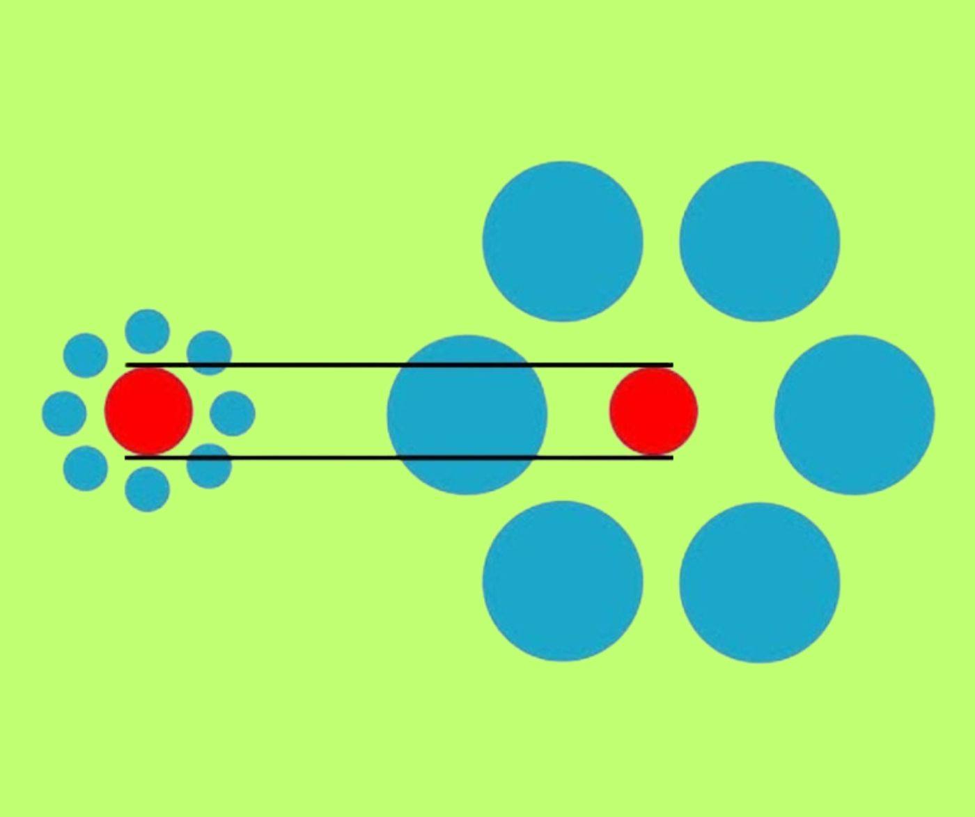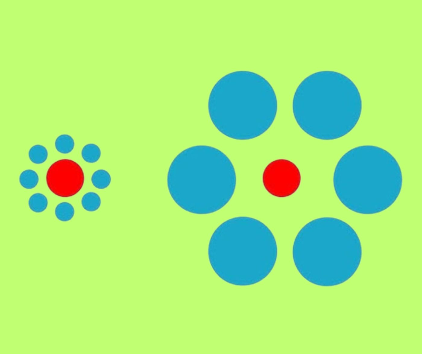 În imaginea de mai jos, puteți observa mai multe cercuri albastre și două roșii. Trebuie să urmăriți cu atenție și să încercați să identificați care punct este mai mare. Acestea sunt așezate la o anumită distanță unul față de celălalt.