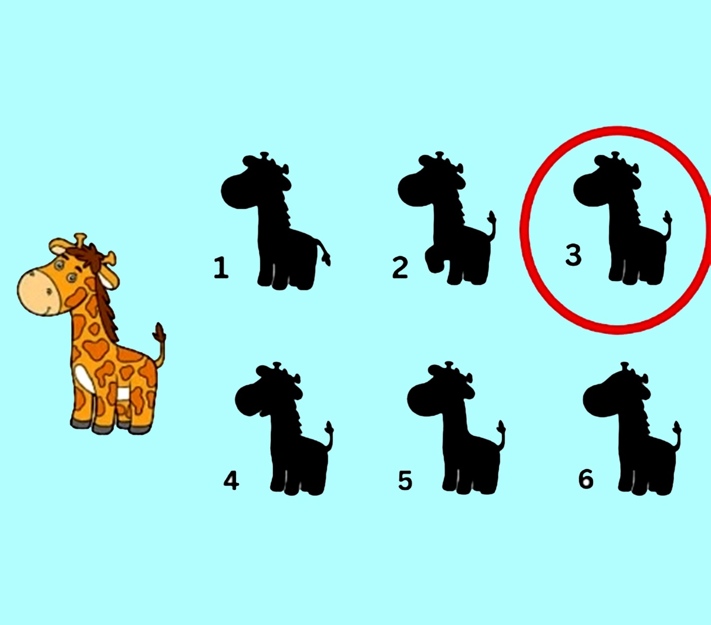 În imaginea de mai sus este prezentată o girafă și mai multe umbre, iar sarcina ta este să identifici silueta corectă care se potrivește cu animalul. Stai! Înainte de a te apuca de acest joc, am adăugat ceva în plus la această provocare: trebuie să rezolvi acest test IQ în 11 secunde. Crezi că reușești? Dacă da, spor la treabă!