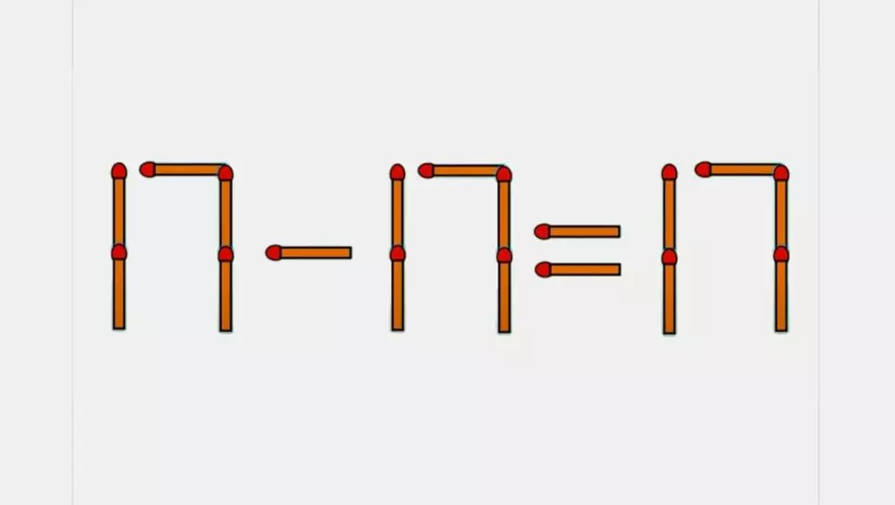 Dacă privești cu atenție cifrele formate din bețe de chibrit, vei observa că printr-o mică modificare poți transforma întreaga ecuație. Pentru a corecta egalitatea, tot ce trebuie să faci este să iei un băț de chibrit de la 7 din rezultat, astfel încât rezultatul să formeze ecuația 1 -1. Prin urmare, ecuația corectă devine 17 -17 = 1-1 adică 0.