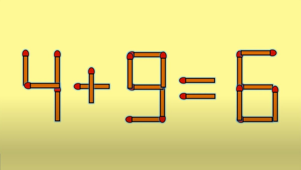 Ești pregătit pentru o nouă provocare? Dacă da, ești în locul potrivit! Îți prezentăm o iluzie optică virală! Tot ce trebuie să faci este să corectezi 4 + 9 = 6, mutând un singur băț în maximum 33 de secunde. Trebuie să precizăm încă de la început că numai geniile își vor da seama de rezolvare. Atenție! Nu ai prea mult timp la dispoziție! 3, 2, 1… Start!