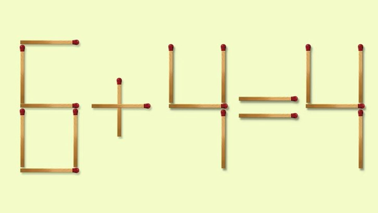 Test IQ cu chibrituri. Mutați 1 băț pentru a corecta egalitatea: 6+4=4. Există 3 soluții