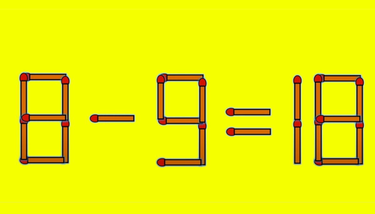 Testul de astăzi pare la prima vedere unul simplu, cu o operație matematică de clasele primare, însă, nu e chiar așa. În esență, tot ce trebuie să faci este să muți un singur băț de chibrit pentru a corecta egalitatea 8 – 9 = 18.