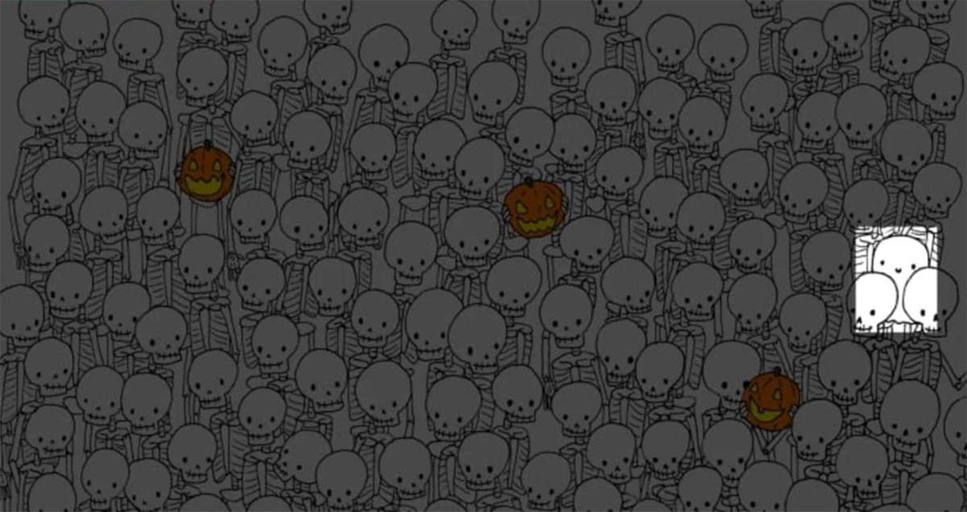CANCAN.RO ți-a pregătit un test de inteligență în ton cu sărbătoarea americană ce a devenit populară și în România, în ultimii ani. În ziua de Halloween încearcă să descoperi fantoma ascunsă printre schelete. Geniilor le vor trebui numai 7 secunde pentru a rezolva acest test de inteligență.