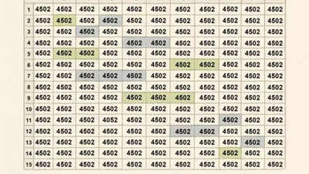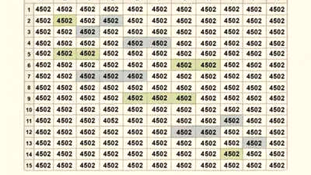 Așadar, testul propus astăzi este unul destul de greu de deslușit, cel puțin într-un timp scurt. Iar pentru a o face trebuie să te concentrezi bine și să ai claritate vizuală. În linii mari lucrurile sunt simple: în imaginea prezentată printre multitudinea de numere 4502 stă ascuns destul de bine și numărul 4052. Tot ce trebuie să faci este să îți dai seama unde este poziționat acesta. Și timpul în care ai rezolvat destul este relevant. Se pare că doar geniile reușesc să ofere răspunsul corect în doar câteva secunde.