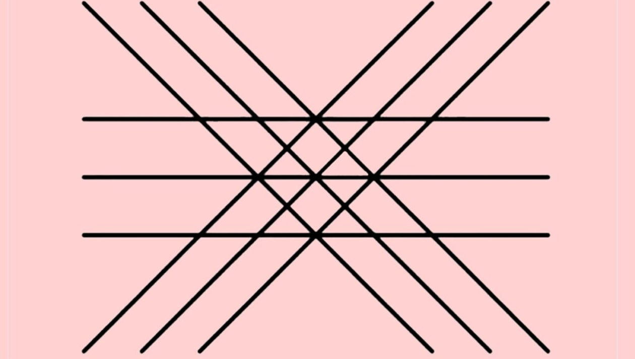 În imaginea de mai sus există o serie de linii drepte, negre, care se unesc în anumite puncte. Totodată, trebuie să luați în considerare faptul că există trei seturi de linii paralele, care au, la rândul lor, câte trei linii negre. Practic, sunt nouă linii în total. Dar câte triunghiuri? La o atenție deosebită asupra imaginii se pot identifica 22 de triunghiuri.