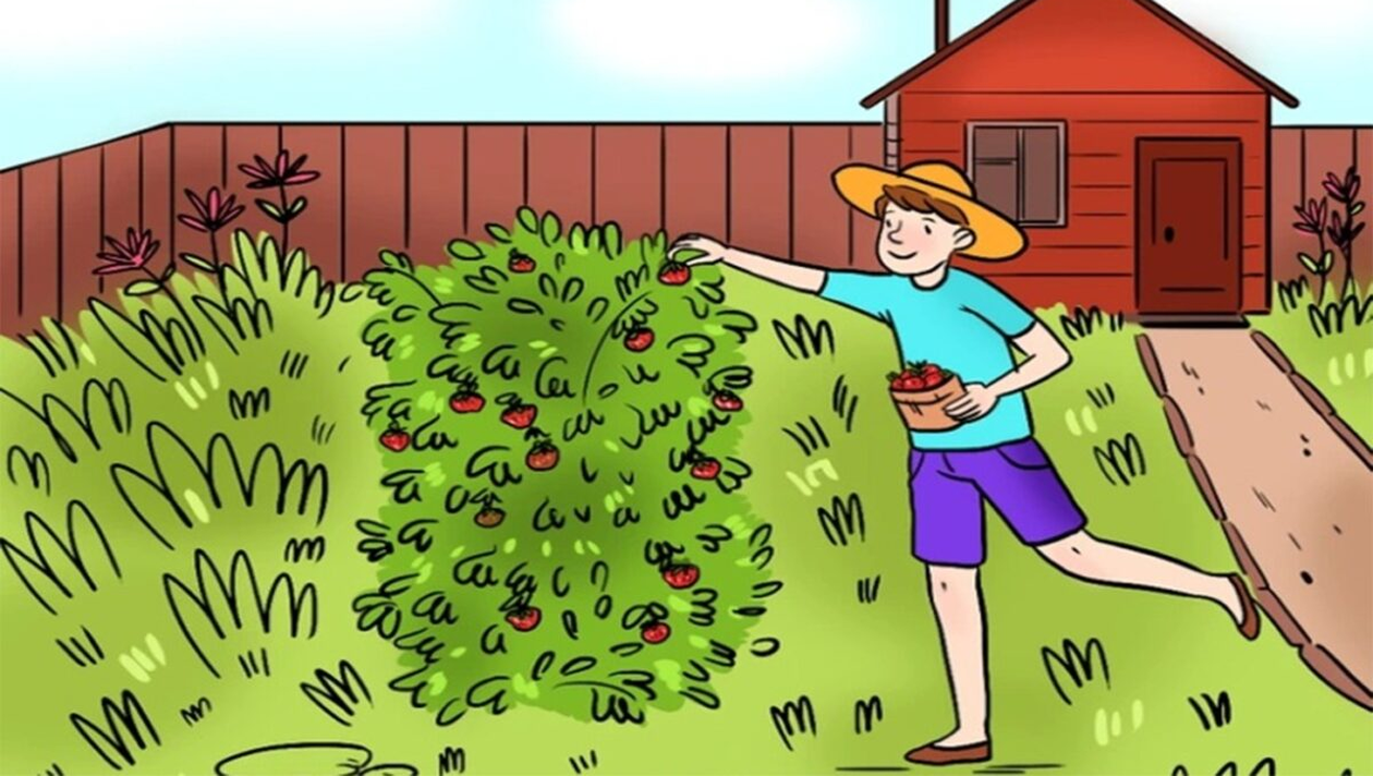 Imaginea din acest test prezintă un cadru în care un băiat culege căpșuni din grădină. La prima vedere, totul pare perfect normal. Cu toate acestea, există un detaliu greșit, ascuns în imagine, care nu corespunde realității.