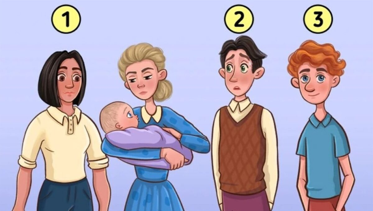Privește imaginea: o femeie ține în brațe un bebeluș, iar alți trei adulți stau în apropiere. Unul dintre ei este tatăl copilului. Poți să-ți dai seama cine e? Ai doar 5 secunde—nu te gândi prea mult! E vorba de intuiție și de ceea ce observi la prima vedere. Uită-te la expresia bebelușului, la felul în care îi privește pe ceilalți, la eventuale asemănări fizice sau mici detalii emoționale. Chiar și ceva aparent nesemnificativ, cum ar fi culoarea părului, poate fi un indiciu. Cine crezi că e tatăl? Primul, al doilea sau al treilea? Alege pe cineva instinctiv, fără să analizezi prea mult!