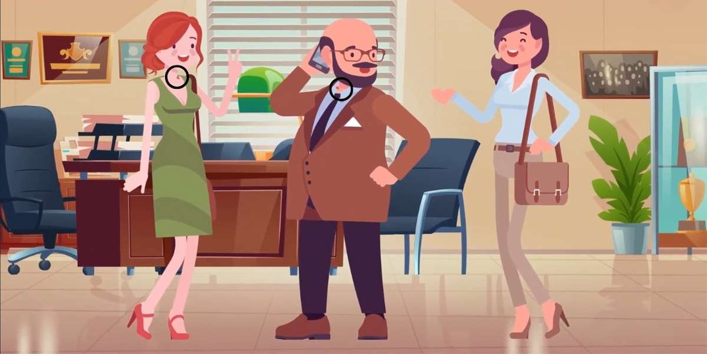 REZOLVARE: Ei bine, așa cum se poate observa în fotografie prima femeie și bărbatul au un semn distinctiv pe gât: o aluniță.