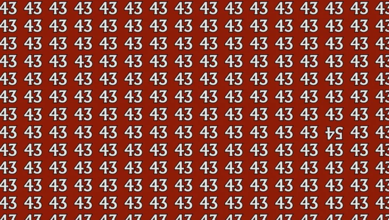 Este timpul pentru un scurt exercițiu pentru minte. Ne testăm abilitățile, iar astăzi o să o facem prin deslușirea unui test de perspicacitate. Tot ce trebuie să faci este să privești atent iluzia optică devenită virală și să îți dai seama unde apare numărul „54” în multitudinea de numere „43”. Doar geniile reușesc să facă asta într-un timp scurt.