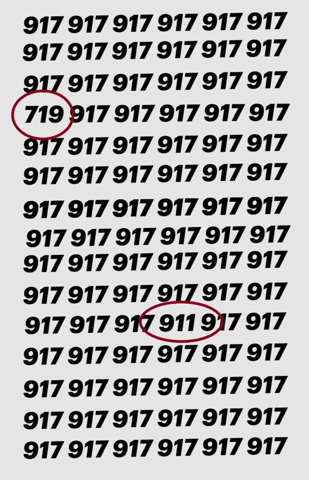 Aceste jocuri de tip iluzii optice evidențiază modul în care creierul tău clasifică informațiile vizuale, dar și viteza cu care le identifică. Numerele și modelele dintr-un șir par regulate, iar de obicei trecem cu vederea atunci când, de fapt, ceva e schimbat în imaginile pe care le avem în față. Totuși, nu trebuie să te demoralizezi dacă nu te încadrezi în cele 19 secunde, deoarece mulți au impresia că reușesc, și când colo, acest puzzle vizual este mai greu decât vă puteți imagina! Când ești pregătit, setează cronometrul pentru timpul dat și dă-i bătaie!